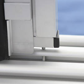 Die Verschiebesicherung ermöglicht das sichere Fixieren der großen Schiebetüren. Ein schmaler Auflagerin der Überdachung spart Platz in jedem Bereich. Der Auflagering ist eloxiert oder auch in einer angepassten Farbe erhältlich.